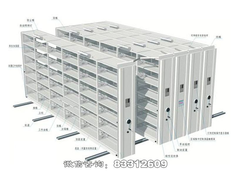 A4、★智能密集架移動有電動、手動方式,可自由切換,智能管理可有線、遠程操作,還具有無線PDA操作功能,進行智能化操作。 | ||